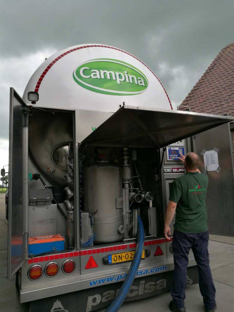 为了节约人力上的开支,Adri购买了挤奶机器人。奶牛为了吃到精饲料,会主动靠近挤奶机器人,机器人扫描奶牛的耳标,确定奶牛已经到了挤奶的时候,放奶牛入闸,投喂精饲料,机器手臂则抓取奶牛乳头开始挤奶。整个过程很快可以完成。