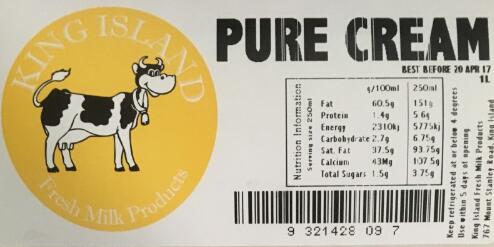 食品 伙伴网讯 据 澳新 食品 标准 局(FSANZ)消息,4月13日澳新食品标准局发布 召回 通报称,由于产品可能受到 大肠杆菌 污染,国王岛鲜 乳品公司 宣布召回2款 乳品 。 这两款乳品分别为一款低脂乳(规格1L、2L)、一款纯 奶油 (300...