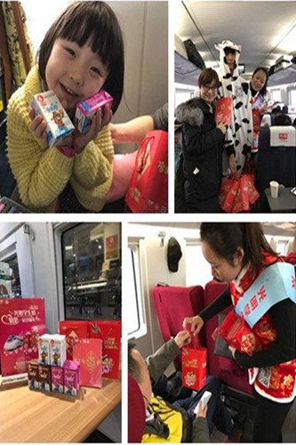 此外,为进一步增强消费者对光明乳业产品的认知度和体验度,首发仪式结束后,光明乳业的工作人员走上G14次列车,开展“乐在2017”学生奶关爱儿童爱心公益活动。