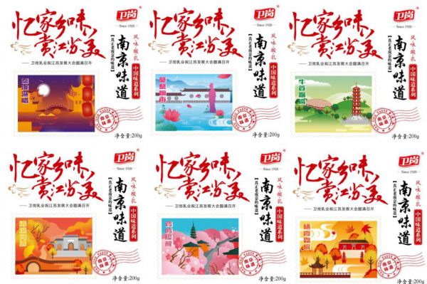 卫岗乳业此次推出的六款限量定制,展现金陵城的最美风景,旨在与参加江苏发展大会的各界大咖们一起感受记忆中的南京味道。