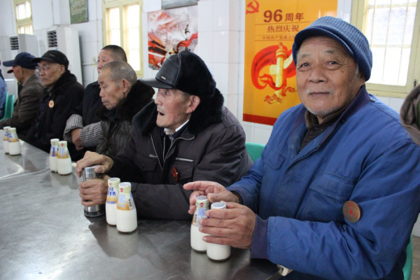 70岁的孙老拿着刚领到的牛奶,边喝边称赞:“跟我们以前喝的味道一样,几十年一点都没变,还是那么香。”敬老院的老人们对卫岗的牛奶都赞不绝口。