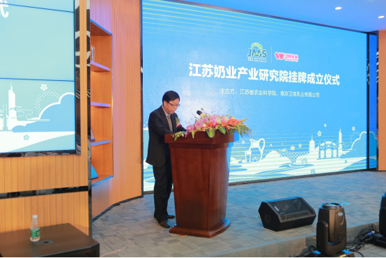 上午9时30分,江苏奶业产业研究院揭牌仪式开始。江苏奶业产业研究院院长仲跻峰、卫岗乳业董事长、产业研究院理事长白元龙、江苏省农业科学院院长易中懿和江苏省农委畜牧业处处长杨瑛分别上台致辞。