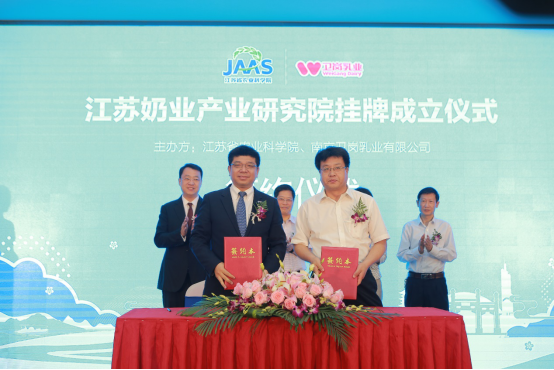 “此次‘江苏奶业产业研究院’的成立,不仅是企业与科研机构的合作,更是江苏助力中国奶业全面振兴的重要举措,也是卫岗乳业这一百年乳企创新求变,紧追时代浪潮的有力行动。”白元龙董事长表示,卫岗拥有90年悠久历史,始终秉持“博爱民生”的企业理念,肩负社会责任,致力于提供更能满足消费者个性化需求和更高品质的牛奶产品,而江苏省农业科学院拥有国内顶尖科研人才和创新技术。二者强强联手,以市场需求为导向,农科院为创造国际领先的乳业科研成果提供科技支撑,卫岗乳业为乳业科研成果的转化提供孵化平台,共同携手加速乳业科研成果的落地,将推动中国奶业的升级发展。