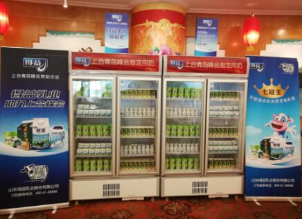图为:得益乳业凭借高品质的牛奶和高质量的服务出色地完成了为上海合作组织青岛峰会提供乳制品的光荣任务