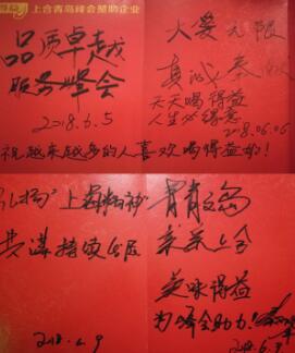 图为:上合青岛峰会与会嘉宾为得益乳业题字送祝福