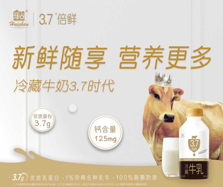 是时候考虑给自己来一点“新鲜”的感觉了!辉山3.7倍鲜冷藏牛乳,口感香浓,品质出众,每一滴都“新鲜”的恰到好处,带给你非一般的享受!
