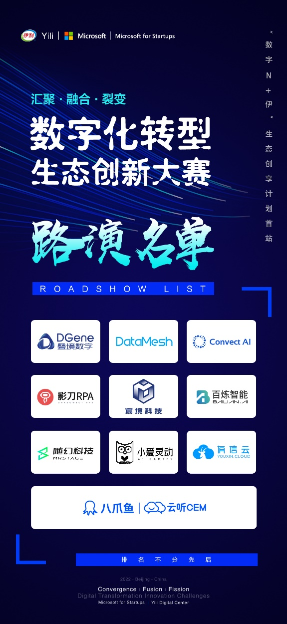 可以预见,这些科创企业的加入,势必将6月23日举行的数字化转型生态创新大赛正式路演推向高潮。届时,最终获胜的6家企业,将获得共计不低于120万元的试点项目启动资金,其余4家入围企业可优先成为伊利数字化转型合作伙伴,并入选微软加速器项目候选名单。