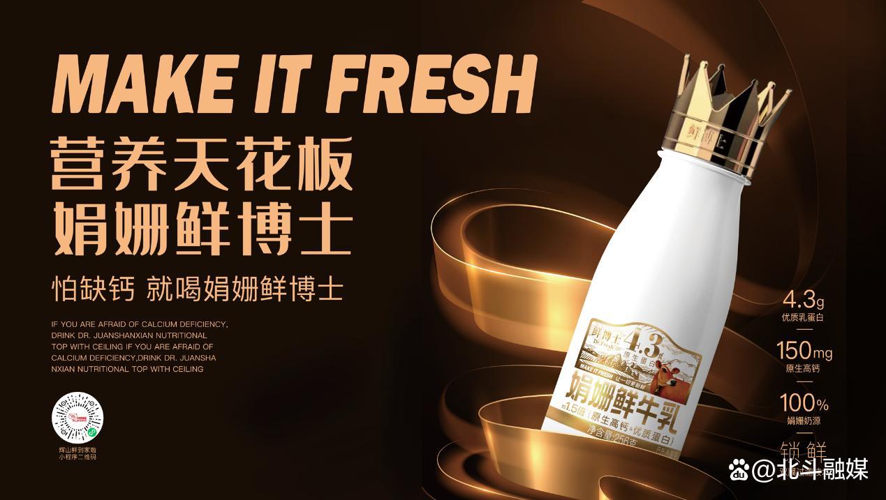 创新技术赋能产品迭代,鲜博士助力鲜活营养再升级,越秀辉山重磅发布娟姗鲜博士4.3g鲜牛乳新品。作为鲜博士系列的代表性产品,娟姗鲜博士4.3g鲜牛乳每百毫升含有150mg原生高钙、4.3g优质蛋白,是普通牛奶基础营养的约1.5倍,出道即巅峰,成为当之无愧的新鲜营养“天花板”,未来这套“金标”鲜博士还将包括A2、零乳糖、有机等产品。从满足大众饮奶升级的“蓝标”鲜博士,到满足年轻人的跨界鲜博士,到今天顶配“金标”鲜博士,依托“牛在身边,奶更新鲜”的优势,鲜博士正在“让一切更新鲜”。