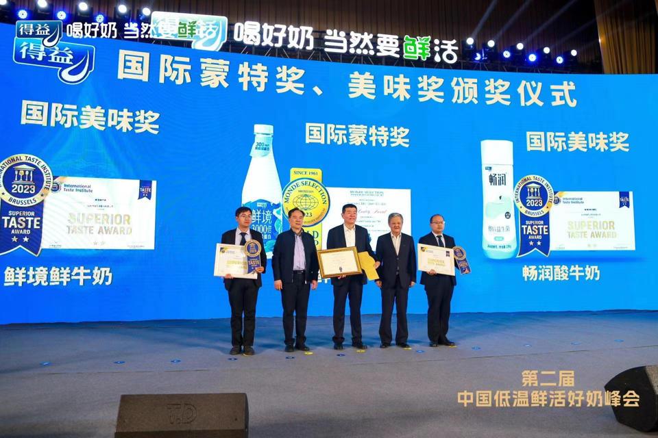 为推进健康中国战略,加快实现中国低温奶领域高品质建设再上台阶,4月23日,由国家奶业科技创新联盟、中国奶业协会、中国乳制品工业协会、淄博市农业农村局主办,山东得益乳业股份有限公司承办的“数字科技产业链 鲜活营养创新高”第二届中国低温鲜活好奶峰会在山东淄博召开。中国低温奶智造标杆——山东得益乳业股份有限公司智造的新品“鲜境鲜牛奶”“畅润酸牛奶”等,荣获被誉为食品界“诺贝尔”奖的“国际蒙特奖金奖”和“奥斯卡”奖的“国际美味奖”,标志着得益乳业产品品质比肩全球顶级优质乳。