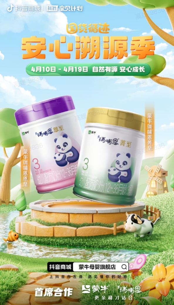 4月10日-4月19日,蒙牛瑞哺恩联合抖音IP“抖in宝贝计划”开启“安心溯源季-国货循迹”之旅。围绕“溯源”核心,蒙牛瑞哺恩以首席合作品牌身份首发“喝蒙牛瑞哺恩召唤国宝”抖音挑战赛,携手瑞哺恩明星溯源官包文婧揭开沙漠有机奶源神秘面纱、联合权威专家学者在线溯源瑞哺恩“全面亲和营养”配方,以及举办线下亲子森友会活动……通过线上线下一体联动,向消费者全方位展示蒙牛瑞哺恩国货品质实力。本次“溯源季”活动,蒙牛瑞哺恩在短时间内全网曝光量破亿,收获极高关注度,影响力再创新高。