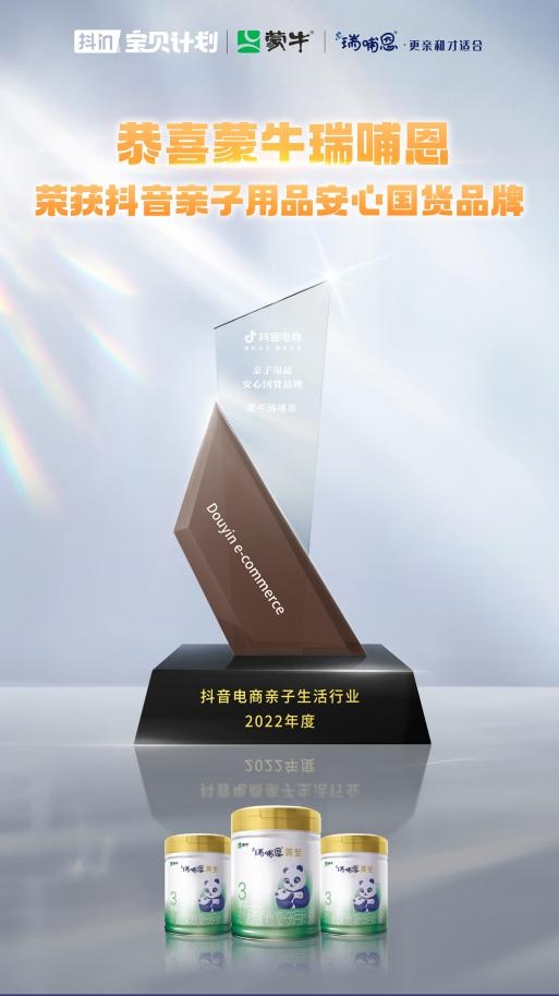 (图:蒙牛瑞哺恩荣获抖音“2022年度亲子用品·安心国货品牌”)
