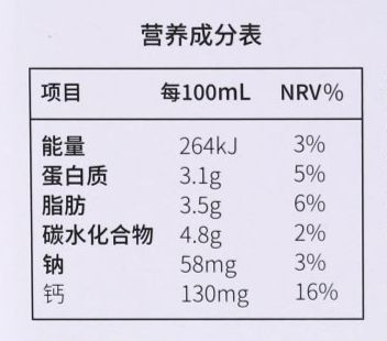 这款牛奶的配料同样只有生牛乳,因此所含的营养成分都来自新鲜牛奶本身。