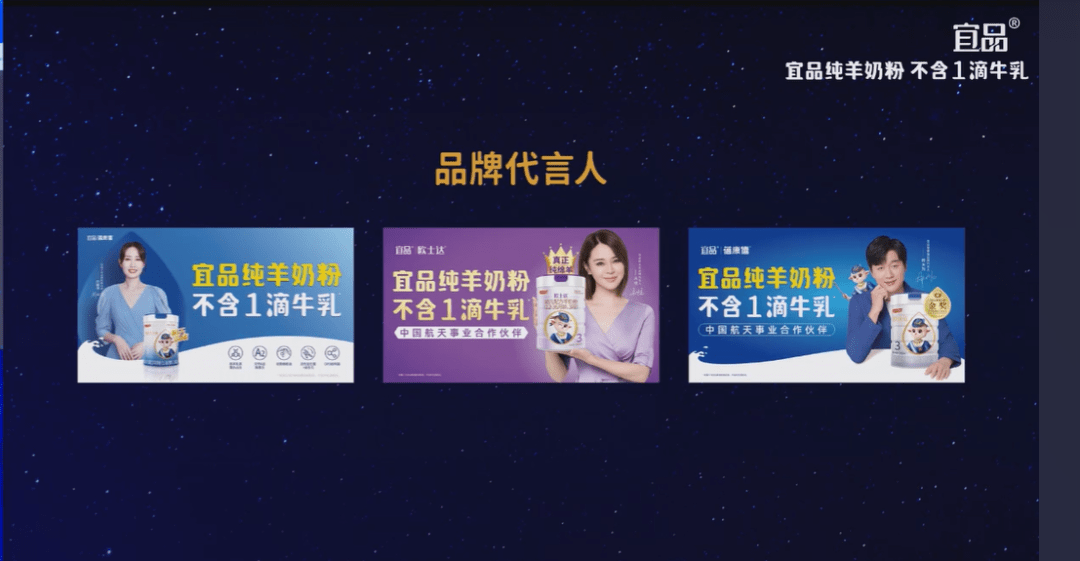 与此同时,宜品在品牌宣传上也是持续加码,代言人已经拥有佟大为夫妇以及刘敏涛,牟善波透露,未来还会有更多的形象代言人。另外,宜品还冠名的《三胎时代》、《运动不一样7》等节目,高铁、电梯媒体、新媒体投放,以及举办中国好导购、纯羊奶粉节等活动为终端渠道不断赋能。