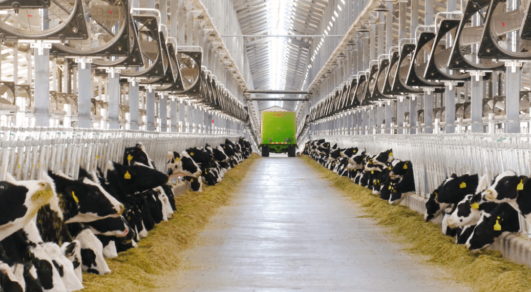 走进位于开鲁县小街基镇富裕村的优然牧业开鲁牧场,一栋栋现代化棚舍整齐排列、一头头黑白花奶牛膘肥体壮。这些奶牛所产的鲜奶经过制冷储存、检测合格后,将在规定时间内直供伊利集团。优然牧业开鲁牧场规划存栏1.2万头,目前已经进入挤奶运营期。“开鲁牧场2021年3月开始建设,2022年1月进牛,2023年1月开始投产运营。牧场规模是1.2万头,项目的总投资是5.16亿元,建设面积1800亩。牧场满产以后,日产鲜奶达到230吨左右, 年营业额达到3.5亿元。”优然牧业开鲁牧场场长毕力格图说。
