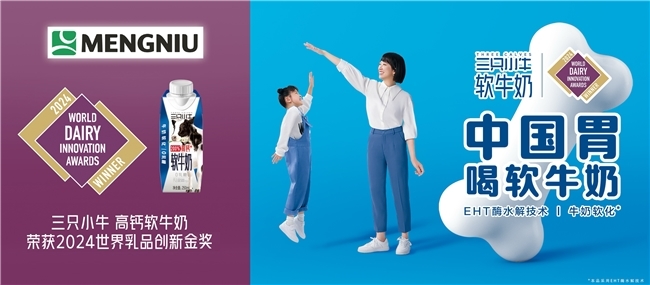 图为:三只小牛高钙软牛奶荣获2024世界乳品创新金奖