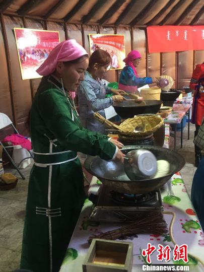 图为通嘎和她的好朋友们一起做的察干伊德 乌瑶 摄