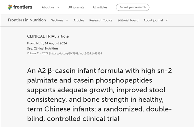 近日,君乐宝至臻A2型奶牛奶粉产品力与品质力再获国际认可。至臻奶粉携手上海交通大学医学院附属新华医院主任医师盛晓阳教授开展的婴幼儿临床喂养项目相关论文被国际营养学领域权威期刊《Frontiers in Nutrition》收录。《Frontiers ...