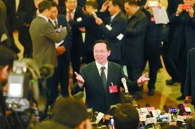 中新社北京3月5日电 我对中国奶业振兴充满信心。中国农业部部长韩长赋5日表示,相信有一天外国游客会买中国奶粉。 3月5日,十二届全国人大五次会议在北京人民大会堂开幕。农业部部长韩长赋在部长通道接受采访。中新社记者 盛佳鹏 摄 当日,十二届全国人大五...