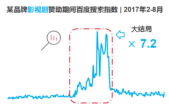 例如综艺播出致使引流长效增长,节目中口播不断激发关注。根据百度指数,某品牌真人秀赞助期间百度搜索指数7天达到一个峰值、平均持续 90 天、平均增幅达到29%,可以反映出综艺节目对品牌营销效果的特点是持续时间相对较长,搜索峰值与节目播出频率吻合,但总体搜索量峰值相对较低。