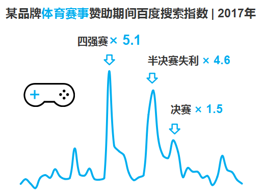 在赛事赞助方面,可通过巧用IP与特定消费群体互动,引爆关注热度。据百度指数显示,2017年乳制品品牌体育节目赞助期间百度搜索指数平均持续 29 天,体育赛事的增幅达到了57%。针对于电子竞技以及传统项目的赞助则是触达小而专的年轻群体的新途径。然而赛事靠成绩说话,好的比赛成绩让赞助商事半功倍,但如果品牌商所赞助的参赛队伍成绩不佳,往往会导致损失部分搜索热度。品牌主在选择赛事赞助时需要特别考虑其风险性。