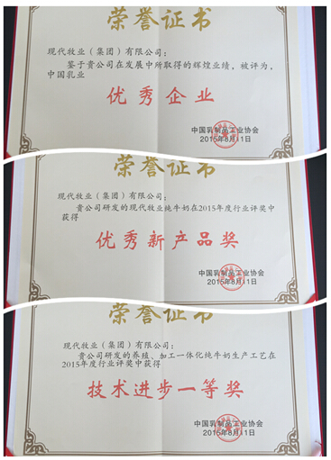 “现代牧业自有品牌常温纯牛奶荣获2015年优秀产品奖,是国产优质乳品的杰出代表。”中国乳制品工业协会相关负责人表示,本届乳协大会是一次世界性的大会,除了现代牧业等众多国内行业巨头外,还包括众多国内外乳业工作者和专家人士,以及来自美国、法国、澳大利亚、新西兰、爱尔兰等十多个国家的行业代表。以现代牧业为代表的国产优质品牌,为中国乳业赢得了国际声誉。