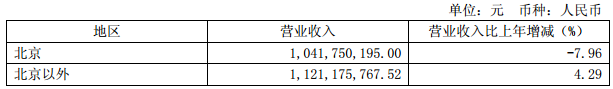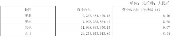 主营业务分地区情况,数据如下: