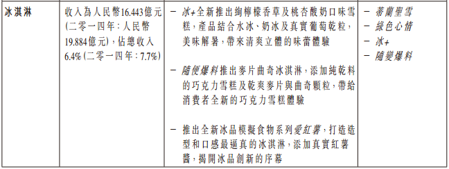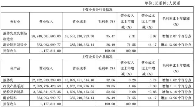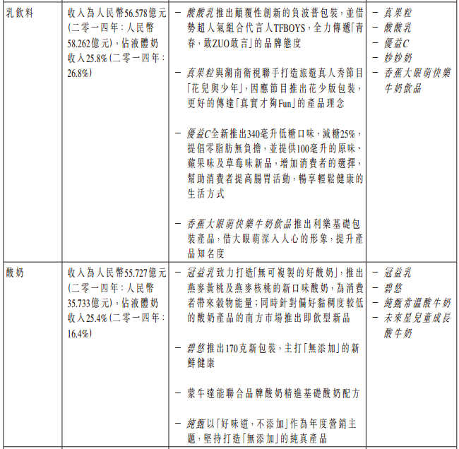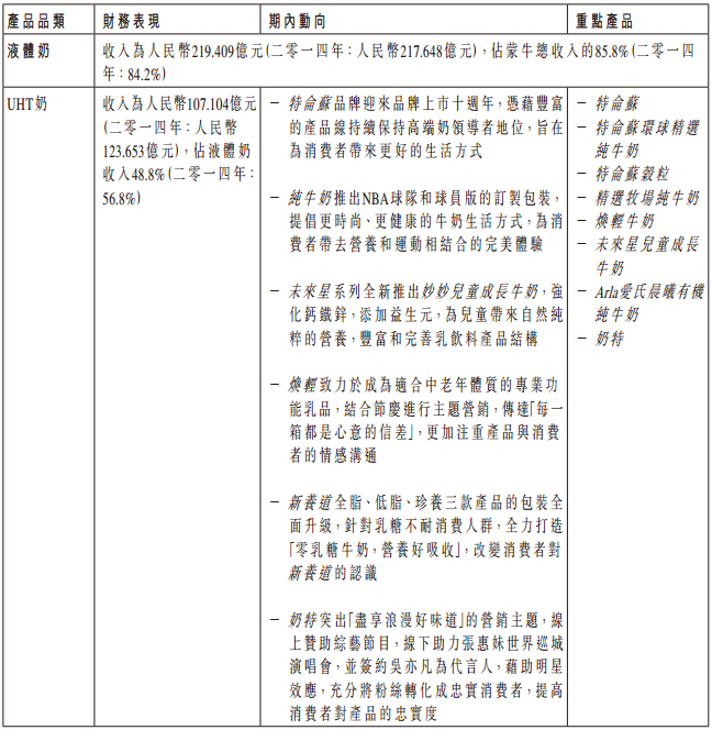 蒙牛在财务报表中对其主要业务的表现进行了具体说明: