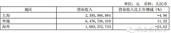 光明乳业主营业务分地区情况: