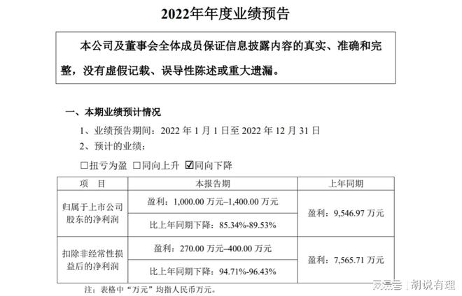 2020年在创业板挂牌交易的品喔食品前近日再次交出一份令人大跌眼镜的业绩预告单,公司预计2022年净利润1000万-1400万,比上年同期的9547.97万元下滑85.34%-89.53%。扣非净利润270万-400万,同比上年同期的7565.71万元下滑94.71%-96.43%。