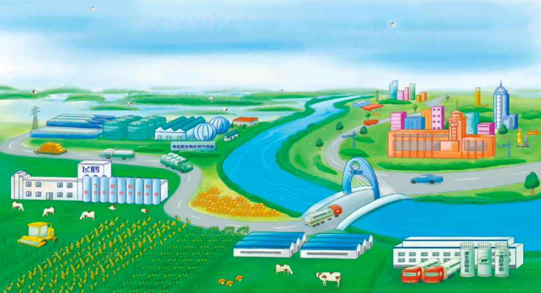 而飞鹤这套解决方案把牛粪污和东北地里的玉米秸秆一起进行厌氧发酵,制成沼气,再进一步提纯成生物天然气;天然气回到牧场和工厂,用于热能的转化;沼渣、沼液又通过二次发酵变成有机肥;有机肥还田,种植有机、天然的饲草饲料,然后再用来养牛。其真正做到了“没有废物,只有没被利用起来的资源”。