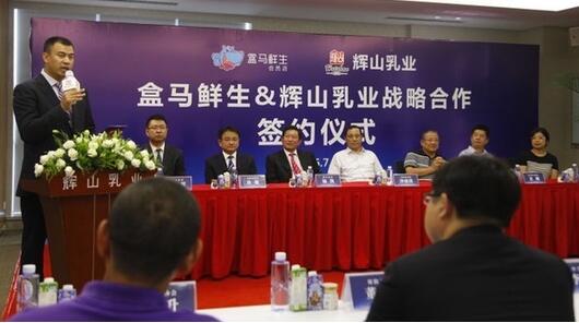 新华网南京7月23日电(徐健 陈鹏飞/文 郭晴/摄)7月23日下午,日产500吨高品质乳制品的江苏辉山公司牵手上海翌恒网络科技有限公司(盒马)在沈阳签署深度战略合作协议。双方将实现供应链管理的跨界整合,共同推出中国首个乳业O2O品牌哞客,并率先进军华...