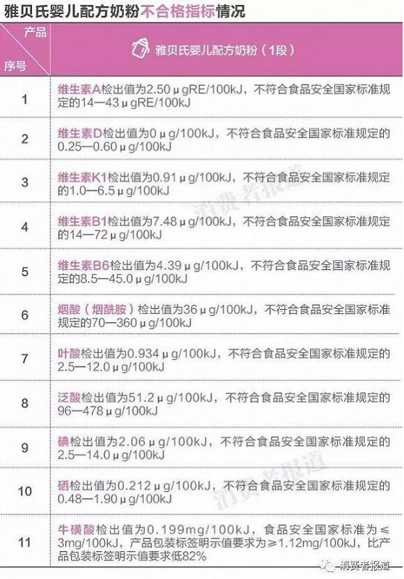 抽检:雅贝氏婴儿配方奶粉10项指标不合格