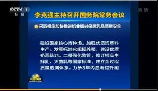 会议在重要产品标准修订、提升国产奶粉品质和美誉度、饲草料产业发展、奶源基地建设、金融支持等问题上做了重要决策部署。这是继2013年后,时隔五年国务院再次以专题会议的形式,关注中国奶业,体现了党中央、国务院对“一杯牛奶”的高度重视。