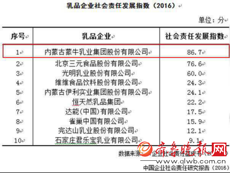 此前《中国企业社会责任蓝皮书(2016)》中,蒙牛在中国乳品企业社会责任发展指数中以86.7分位居于乳品行业第一。1月7日《中国企业社会责任报告白皮书(2016)》出炉,蒙牛成为唯一获得五星级评定的乳品企业。蒙牛再度登上“履责星级榜”,则在新年来临之际交出了一份满意的责任答卷。