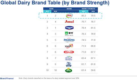 日前,在国际品牌价值评估权威机构Brand Finance公布的2017年度Brand Finance全球乳制品品牌价值排行榜中,伊利取得了亚洲第一的优异排名。其品牌强度指数,更是位居全球第一。这创造了亚洲乳企迄今为止的最好成绩。