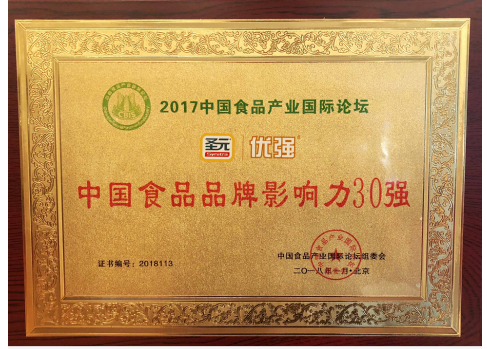 就在2018年1月份荣获了2017年度中国食品品牌影响力30强