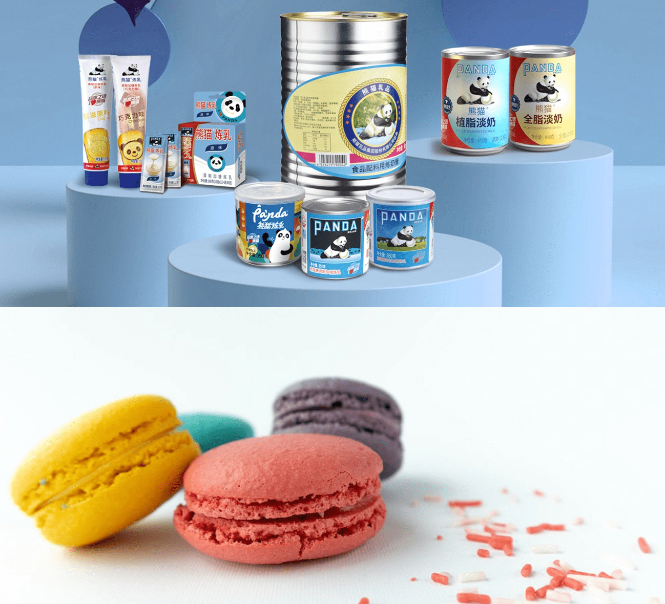 熊猫淡奶油易打发,常温储存,稳定性佳,适合冷热饮品、甜品、水果装饰等多款应用;熊猫淡奶口感顺滑细腻,香甜浓郁,多用来制作经典港式奶茶和甜品,为餐品增加口感层次。为烘焙增加流量“饮”擎,实现渠道延展突破,助力客户轻松拿捏家庭、烘焙门店和茶饮店等场所的多重诉求。