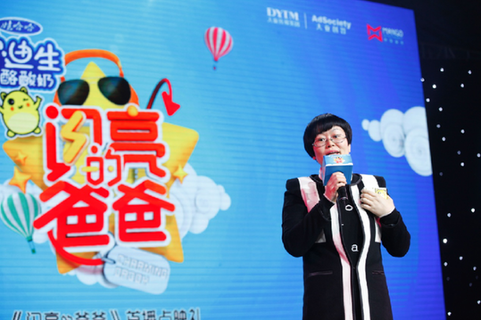 图片说明:杭州娃哈哈集团市场总监李凤媛在《闪亮的爸爸》点映式上发言。