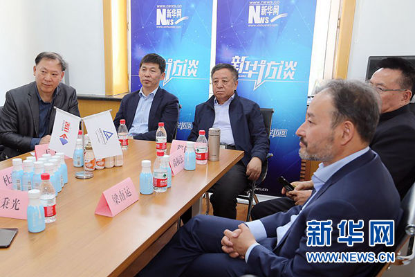 郑俊怀(右三)在访谈中。新华网才萌 摄