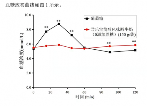 依据国际ISO 26642:2010标准方法,研究结果表明,对比食用相同可利用碳水化合物含量的葡萄糖检测,君乐宝简醇酸奶餐后血糖和胰岛素水平反应均较平稳,血糖波动小于葡萄糖,产品 GI值≤55,是目前国内首款得到低GI食品真实品质认证的全产品系列酸奶产品。