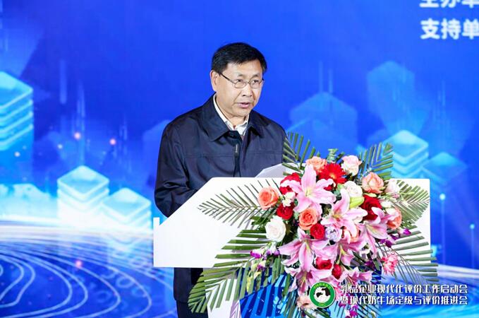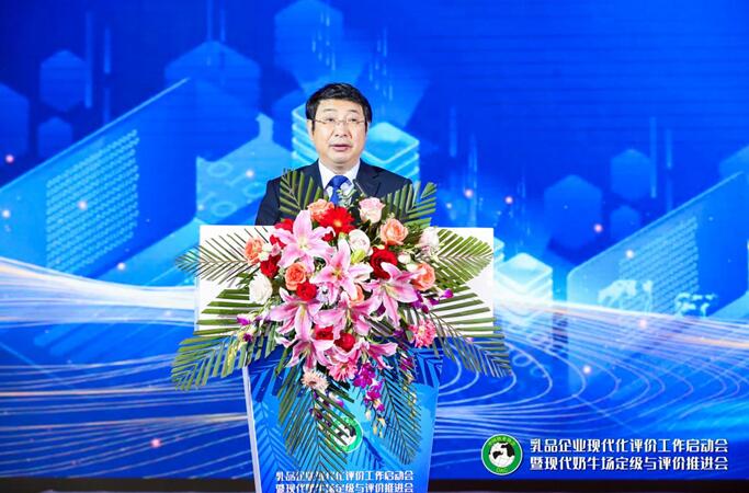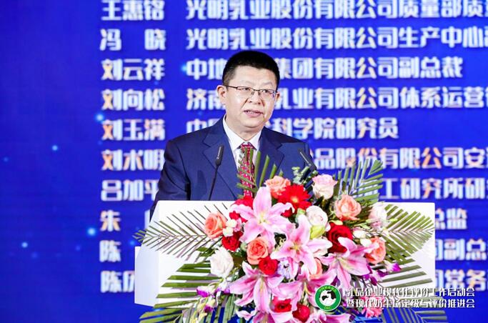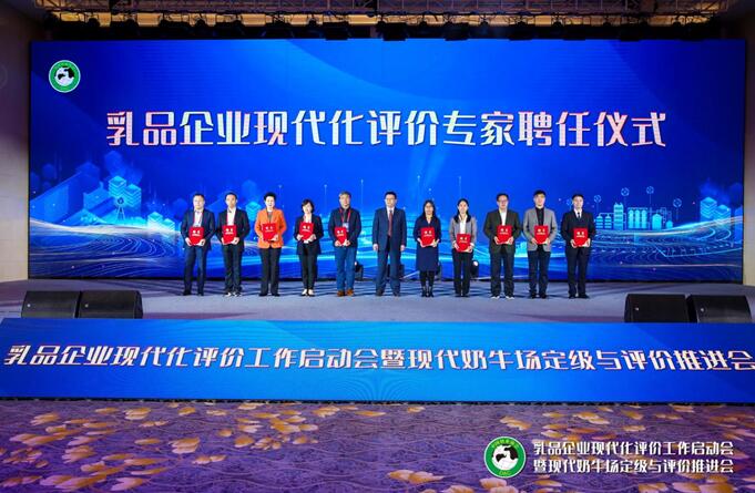 农业农村部总畜牧师马有祥、中国奶业协会副会长兼秘书长刘亚清、中国农业科学院食物与营养发展研究所所长王加启、中国农业大学教授、国家奶牛产业技术体系首席科学家李胜利、内蒙古伊利实业集团股份有限公司副总裁刘春喜、现代牧业(集团)有限公司总裁高丽娜、君乐宝乳业集团董事长兼总裁魏立华、澳优乳业(中国)有限公司董事长颜卫彬、内蒙古蒙牛乳业(集团)股份有限公司副总裁顾瑞珍参加乳品企业现代化评价工作启动仪式。